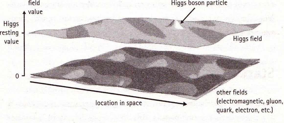 Het Higgs-veld verleent massa aan massadragende deeltjes. Fysici zeggen dat mooi: de Higgs-oceaan doordrenkt het universum. In de ontzagwekkende hitte van de oerknal ontstonden tijd, ruimte, de vier natuurkrachten, de overige elementaire deeltjes en de Higgs. Terstond volgde de fase van inflatie, de veronderstelde supersnelle uitdijing die het prille universum homogeen en glad maakte, zoals we het nu kennen. Er zijn veel speculaties waaruit de oerknal ontstond, maar dat is nu het onderwerp niet.