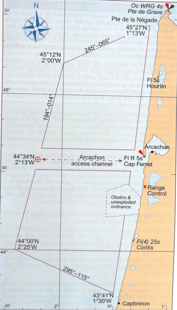 Om vier uur passeren we het waypoint op het uiterste ZW-puntje van het schietgebied. dat zijn we in elk geval voorbij. Ik zie dat het nog 32 mijlen is naar de uiterton van de Gironde bij Royan. Wat zullen we doen? Ik roep op VHF de Tartaan; we besluiten nog maar een tijd op deze koers door te gaan, het gaat immers snel want de genua trekt flink mee. Een halfuur later zie ik ver aan stuurboord een dansend lichtje. De verrekijker geeft geen verdere details te zien, dus is het geen zeeschip. Waarschijnlijk een visser. Tegen vijf uur wordt het bijna onmerkbaar lichter. Helaas zakt de wind in, de genua, ons snelheidsmonster, moet ingedraaid. Weer een lichtje, een visser steekt voor ons over. Ik dacht dat vissers tegenwoordig ook allemaal AIS hadden, maar deze niet. Om kwart voor vijf overleg ik weer met Piet & Ineke. In de Girondemonding komt om deze tijd een fikse ebstroom op gang, we zien het hier zelfs, de tegenstroom neemt alleen maar verder toe. Die kant opgaan is niet slim, daarom besluiten we om de koers opnieuw op de punt van Île de Oleron te zetten. Er is geen wind dus het gaat langzaam, maar de zeegang is minder steil en koppig geworden. Mijn geliefde voelt zich een stuk beter; ze gaat thee zetten. De Tartaan komt voor ons varen.