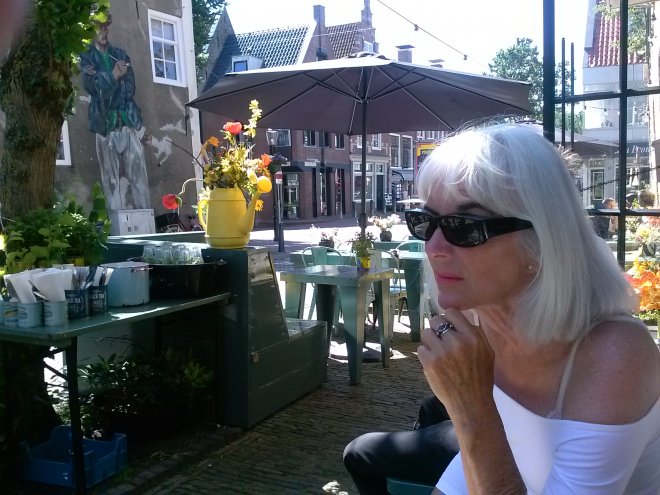 Nog meer klusjes. We brengen mijn vouwfietsje naar een fietsenmaker om een nieuw 16-inch binnenbandje om het achterwiel te leggen. We slenteren door de gezellige Voorstraat en drinken koffie achterin de nieuwe VanderVelde boekhandel annex museum annex bibliotheek. Een mooie zaak! De deur staat open naar een knusse beeldentuin, waar we een kijkje nemen.