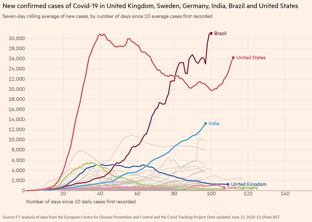 Ondertussen woedt de pandemie verder. De cijfers van de VS, Brazilië en India zijn zeer verontrustend, zie hieronder. De grafiek is van gisteren.