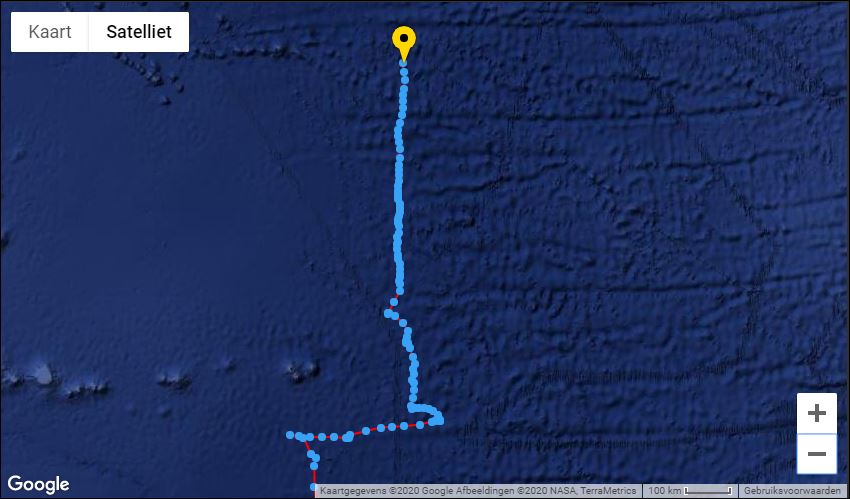 De Bark Europa is de Falklands voorbij en zeilt ergens in het zuiden van de Zuidelijke Atlantische Oceaan (zie hierboven). Op Facebook staat vandaag een verslag. De scribent(e) is ook een beetje chagrijnig. Ze missen de voyage-crew. 'Normaal gesproken spendeert de bemanning nauwelijks tijd aan het roer, maar nu moeten ze het schip 24/7 sturen, 45 minuten draaien aan het roer.' Tja, dat deden wij dus.