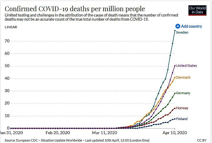 De grafiek boven deze post spreekt boekdelen. Landen die te weinig doen aan maatregelen om de epidemie in te dammen, worden zeer veel ernstiger getroffen. Ik heb dan ook geen enkel begrip voor de opvattingen van mensen als Willem Engel, de gesjeesde promovendus en danser, leider van Viruswaanzin ('Samen Terug Naar Normaal!'), die staalhard beweert dat de hele 1,5 meter toestand moet stoppen. Hij zegt dat we ons druk maken om een ongevaarlijk virus. ‘99,8 procent van de bevolking krijgt er niets van.’ Hoe kun je zó grootscheeps de evidente feiten negeren? Bewuste misleiding, noem ik dat. Vorig weekeinde liep een demonstratie van zijn groep op het Haagse Malieveld op rellen uit. Dit weekeinde willen ze er weer naar toe, samen met de Gele Hesjes (wat dat nog voorstelt) en de groep Bouw in Verzet. Naar het begin van dit kwartaal